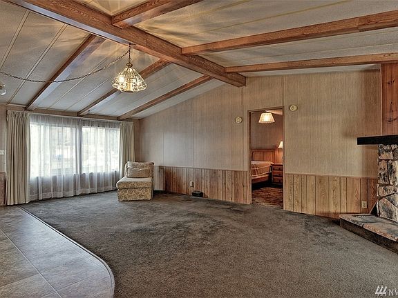 Amazing S Everett location. Very well kept 3bd, 2 bath home w/over 1500 sq ft. Vaulted ceilings, large living & dining room, corner wood burning fireplace, newer carpet & laminate. Entertaining size kitchen w/loads of cabinets & counter space. Updated master bath w/tub tile surround & vanity. Huge covered deck extends length of home. New trex type deck at entry. Large 3 bay shop w/220 power, shed behind shop w/power. 10,454 sq ft lot, fully fenced. Close to Boeing.