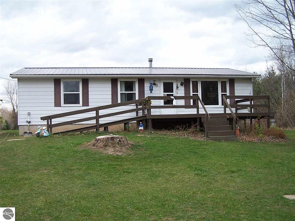 Home on 12 acres. This 3 bedroom ranch style modular home sits on a full basement and is situated well off the road. There is a large pole barn, apple trees, lots of wild life. Owner says her grandson got a 6 point buck Sunday afternoon. This is a long narrow parcel, front half of the property is mostly open with woods and low land to the back. Although this is 1978 structure there have been updates, 4" well in 2006, vinyl windows in 2006, and metal roof in 2015, kitchen cabinets have been updated as well.