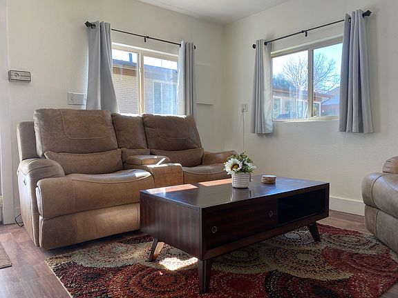 Sunny cottage built in 2020. Comfortable furnished 1 bedroom 1 bath home for business traveler in Wheat Ridge, CO. 3 Month Minimum Stay Owner lives on-site. Property is a separate cottage located in fenced back yard and has separate mailbox. 2-car off-street parking. Furnished with linen, towels and kitchenware. Utilities included: electric, gas, water, trash pickup, wifi, internet. NO PETS. Stainless steel refrigerator, microwave, gas stove with convection oven; deck with barbecue/smoker; fenced yard. 55" Smart TV; work station with desk and monitor. Close to I-70 and 6th Avenue Freeway making access to mountains and city of Denver within minutes. Home is NON-SMOKING, however, guests may smoke outside & use ashtray for residue of cigarettes/cigars/pipes. No Illegal drugs allowed. Deposit (refundable) - 1x charge for length of stay. Cleaning fee - 1x during length of stay (home will be cleaned, including all bedding, linens, kitchen, appliances, bath, floors, etc. prior to your arrival.) $1,900.00/month with minimum 3 month stay; $500.00 damage deposit (refundable); We accept Checks or Zelle or Cash. Public Transit 200 feet away. Nearby: Crown Hill Lake/Park/Open Space in walking distance from home! Gold's Marketplace also in walking distance to enjoy coffee, ice cream, restaurants and other shopping. Sprouts Market 8 blocks away. 3-Month Minimum Stay + Furnished $1,900 Month $500 deposit (refundable) $185 cleaning fee (non-refundable) Utilities includes (water, heat, water, electric, wifi, internet) NO PETS and NO SMOKING in property 2 off-street parking spaces Furnished with linen, towels and kitchenware