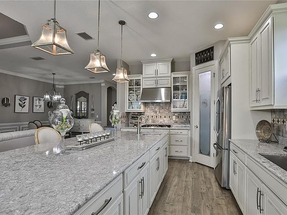 - Interior Features: Ceiling Fans(s), High Ceiling(s), Crown Molding, Walk-In Closet(s), Window Treatments, Open Floorplan, Solid Surface Counters, Solid Wood Cabinets, Stone Counters, Tray Ceiling(s), In Wall Pest System, Thermostat, Pest Guard System