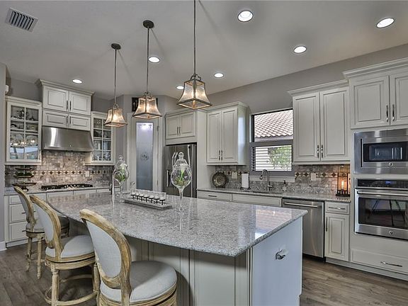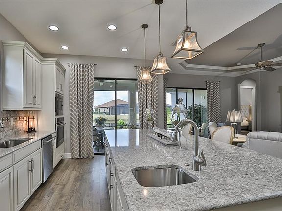 This home looks as if it was pulled straight out of a magazine. As you enter this home the view is amazing all the way to the pond. The upgraded gourmet kitchen is perfect for cooking and is functional for entertaining indoors or outdoors. The engineered wood floors and quartz countertops, not only are they easy to maintain they add richness and beauty to the home. The majestic eight foot doors, trey ceilings and crown molding add a great touch. The open floor plan allows for great views and plenty of spacious room for entertaining. The master suite is spectacular, it's large and roomy for sitting areas, the window affords a beautiful view. The master bath has a very large walk-in shower the "car wash", an upgraded 3/8 shower glass that is stunning, linen closet, plenty of counter top room and a convenient walk-in closet. Second bedroom has it's own separate suite. Plenty of storage throughout the home. Home also has $8,000 walk-in tub, Thera Tub that is jetted and heated.