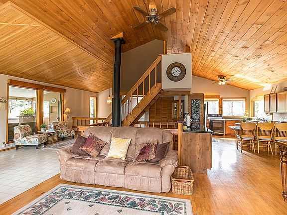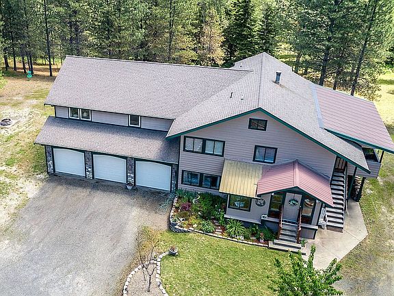 Check out the HD AERIAL VIDEO of the house, shop and pond at https://www.youtube.com/watch?v=A-GhS1f7PQY. Beautiful spacious 5 bedroom home on 6 acres with sweeping mountain views and a year-round pond. Exquisite master suite with tiled en-suite bathroom and a walk-in closet. Large covered deck just off the huge great room with vaulted ceilings, and a cute loft bedroom up top. Walk-in pantry. Central vac. Family room adjacent to master bedroom has a wet bar and could be converted to a 6th bedroom. Massive oversized 3-car attached garage. 24'x30' shop with lean-to storage on both sides, and a carport behind. House has many unique features including passive solar heating design, a heat pump/forced air furnace, and a powerful wood-burning stove adjacent to a storage room for firewood with pass-through access for wood from outside. New 16+ gpm well installed in 2018. Check out 70+ HD photos in the Virtual Tour at www.tourfactory.com/idxr2757479.