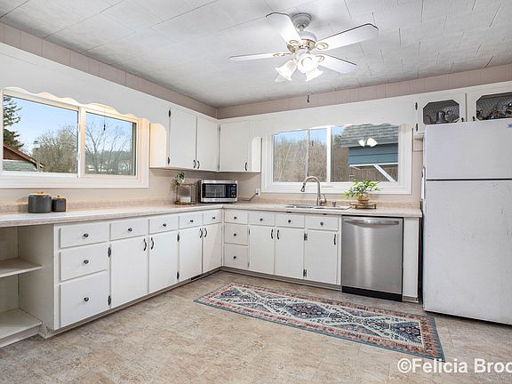 Here's your chance to own this beautifully remodeled farmhouse sitting upon 1.46 acres with endless opportunity. Upon entering the home you are greeted by a spacious airy kitchen with plentiful cupboard & counter space. You will love the open floor plan between the expansive living and dining area featuring new laminate floors, paint, trim, drywall and many new windows throughout. The main floor is complete with a dedicated laundry space, full bath, & bedroom. Upstairs you will find two additional large bedrooms. The basement offers even more potential living space. The possibilities don't end here - the four outbuildings offer much storage, one in which is equipped with electric, water, and bathroom! This property is set up perfectly for your own little hobby farm - don't miss out!