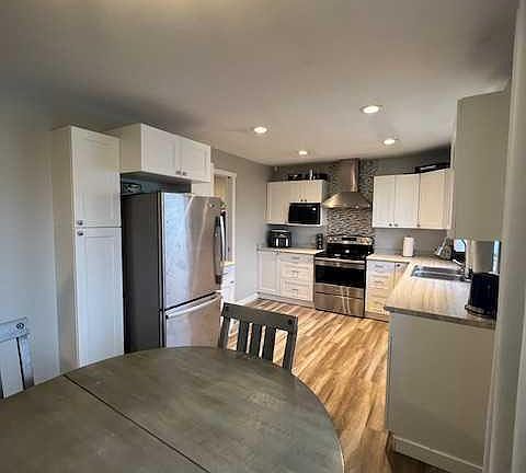 When it comes to location, could it get any better than this? You are literally right across from the park complete with a spray park for your little ones in the summer, walking distance to shopping, banks, recreational facilites and schools. This 3 bedroom bungalow was completely refinished. The kitchen features gorgeous, crisp white, raised panel cabinets, stainless steel appliances, a stunning range fan, ceramic back splash & laminate flooring. The large living room has laminate flooring and a huge picture window. 3 great sized bedrooms, full bath with an awesome vanity & utility room with room for storage, complete the home. Conveniently located just through the side door, is your laundry room. The side deck has a large built in bench to sit and relax after a long day at work. The oversized yard has a firepit where you are sure to enjoy endless hours roasting hot dogs or why not enjoy some "smores" while watching the spectacular Northern Lights that have been entertaining us more than usual this past year. And just so you don't have to worry about shoveling the snow off your vehicle in the winter, there is a detached single garage eliminating that concern. If you have been wanting to plant a garden so you can enjoy fresh veggies during the summer, there is ample room in this yard, for just that. This truly is a great starter home.