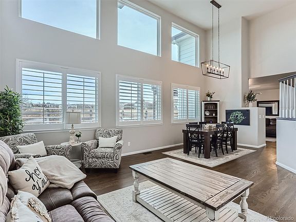 Wake up to an amazing Colorado sunrise over the picturesque open space from the privacy of your primary bedroom balcony. Guests will be greeted by a fully updated home with an impressive, vaulted entryway that includes large windows for viewing the beautiful open space and allowing in an abundance of natural light. The home features many updates including but not limited to a fully remodeled primary bathroom with heated floors, all newer windows, large deck and back patio, window shutters, quartz countertops, basement bathroom addition, new paint and carpet in basement, newer furnace, and A/C, newer well maintained hot tub, newer black stainless appliances, updated fireplace tile, dark stained natural wood floors, multiple smart home devices. The home includes a main level office, main level laundry, spacious 3-car garage, dog run, large loft, and large corner lot. The home is well located within the highly rated Rock Canyon feeder area and includes easy access to endless miles of trails, mountain biking, Heritage Park, dog park, 4 community rec centers and pools, shopping, restaurants and more. This home has been pre-inspected and well maintained! 3D Virtual Tour available by clicking on the tour link or by visiting website: https://my.matterport.com/show/?m=NYVzhGY1afi&mls=1