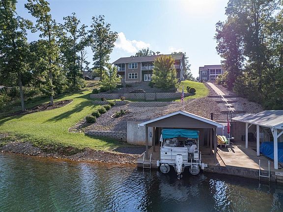 Fabulous 4 bedroom, 2 1/2 bath lakefront home! This home sits on 2 lots and has a covered boat dock and lift. This home has close to 3000 square of living space. The large living room with gas fireplace is the perfect spot to relax and still get a view of the lake. The kitchen has custom cabinets, lots of counter tops and comes with a double oven, cook stop, refrigerator and microwave. The beautiful kitchen has a large breakfast bar plus an adjoining dining area. You will enjoy a very large master bedroom with adjoining bath with a double sink, tub and separate shower. The lower level has 2 bedrooms, bath, family room with large bar, great for entertaining. In addition the lower level has plenty of storage space. If you only want to catch the view this home has so much covered deck areas to enjoy. This home was custom built with efficiency in mind! Don't let this one get away!