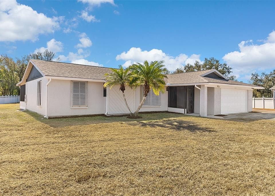 Under contract-accepting backup offers. One or more photo(s) has been virtually staged. **UNDER CONTRACT ACCEPTING BACKUP OFFERS** Welcome to this to charming updated home set on a full acre, offering privacy, space, and freedom with no HOA. This 3 bedroom, 2 bathroom residence features tile flooring throughout, complemented by an updated kitchen and a remodeled primary bathroom. Recent improvements include fresh interior and exterior paint, a new water heater installed December 2025, a newer roof from November 2024, and the AC system replaced in November 2020. Relax or entertain on the expansive screened rear patio and enjoy the open, usable yard space. An oversized detached garage with a loft style storage area, already equipped with electricity and lighting, offers excellent space for a workshop, storage, or future customization with plenty of room for boats, RVs, and toys. Conveniently located with easy access to major roads while maintaining a peaceful country feel. Opportunities like this do not come often. Schedule your private showing today!