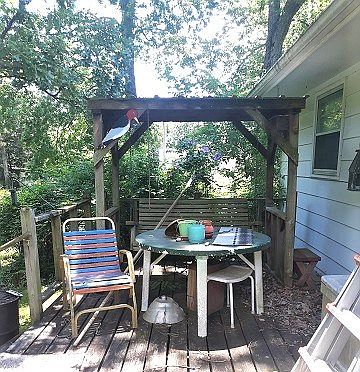 - Features: Ceiling Fan, Porch-Front, Deck, Fireplace-Wood, Shop Building