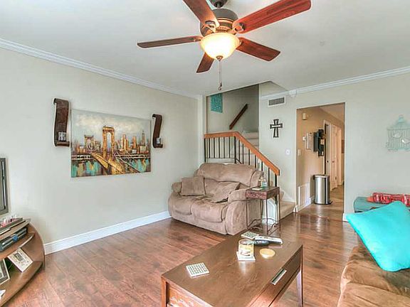 Wonderful end unit townhome! Move in ready and storage galore! Washer/dryer/refrigerrator remain. Has a great side porch and private patio that is gated. Very open kitchen dining area and spacious living area. Must see this adorable townhome! It was just painted this year and new roof in 2014. 1 car garage attached and also one car parking, no cover.