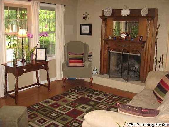 Better hurry on this brick ranch home with full basement; it would be hard to find another home this nice and in this great of a location at this PRICE! The stunning fireplace mantel in the living room is a conversation piece, and reminiscent of something you'd see in Old Louisville. What charm and character! Nice kitchen with dining area, with lots of windows overlooking your private backyard (no rear neighbors here, since the home backs up to a 120-acre family-owned farm!) This home boasts hardwood floors and replacement windows throughout. The master suite was made extra large with the removal of a portion of a wall combining 2 adjacent bedrooms; it can remain as-is and will comfortably fit your king sized furniture, or a buyer could choose to install drywall to separate the spaces, giving a buyer a 4-bedroom home. The full basement offers a second wood-burning fireplace in the family room area, and offers plenty of storage space as well as another bedroom. This lot is HUGE (.37 acres per PVA), with the backyard completely fenced, and is on the corner of 2 dead-end streets, offering a prime location with little through traffic. Call today!