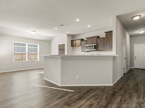 Welcome to this 3-bedroom, 2-bath gem in Abbott Farms III, Owasso. Built in 2022 and boasting 1,574 sq ft, this home offers an open layout with a spacious living room that flows into an eat-in kitchen featuring a breakfast bar and SS appliances. Enjoy LVP flooring throughout and an oversized master suite with a large walk-in closet. Step outside to a sizable backyard perfect for leisure. Conveniently located near Owasso's shopping and dining, and in an award-winning school district.