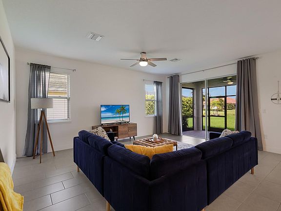 BEAUTIFUL 3 bedroom/2 bath home on LAKE homesite! Close to everything, this centrally located community offers a wealth of amenities. Clubhouse, dining options, fitness center, community pool and golf optional. This open floor plan looks out to a stunning lake and is sunny and bright. An attractive kitchen with quartz conter tops and stainless appliances opens up to the family room, perfect for entertaining. Interior is nicely appointed with neutrals throughout. Paver driveway and maintenace free yard add to the overall curb appeal of this charming home. A social membership is included, however residents have the option of getting a golf membership for the 72 hole championship golf course designed by Ted McAnlis. This home has been very well maintained, pet-free and available for occupancy October 1, 2023.