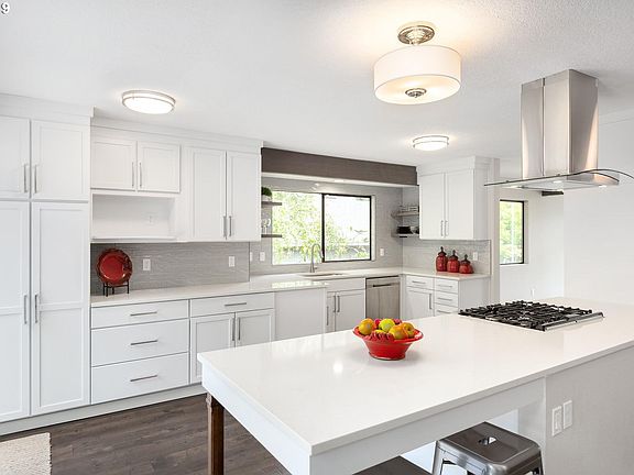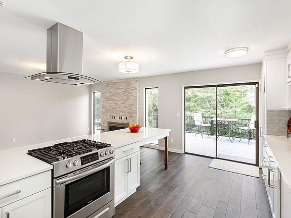 Beautiful remodel with MASTER ON THE MAIN on PRIVATE cul-de-sac backing to green space in great SW PDX location.New wood floors,white shaker cabinets,quartz & tile,interior paint,door hardware,carpet,plumbing fixtures, and much more!Contemporary daylight ranch.Vaulted living room with large windows allowing tons of light.Large open kitchen with eating bar.Master opens to deck and private backyard.Easy commute.
