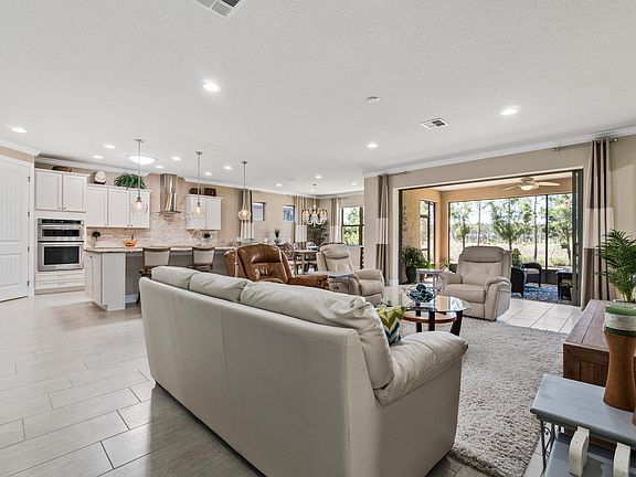 Pinnacle 3/3/3 with all the professional finishes you are looking for. This home has a fabulous meadow view with total privacy while sitting on the paver patio. Home has front screen enclosure and pocket screen door, stone wrap, custom landscaping, garage window panels giving great curb appeal. Interior has custom cabinet upgrades, granite, backsplash, solar tubes for additional light, pendant lights, custom shades throughout including blackout shades in master. Energy film on front windows, chandeliers, ceiling fans and so much more. But the garage will really impress the person that loves to work on their toys, this garage is fabulous with custom flooring, wall mounted storage, pull down storage and more. You really need to take the time to give this one a good look before you buy!
