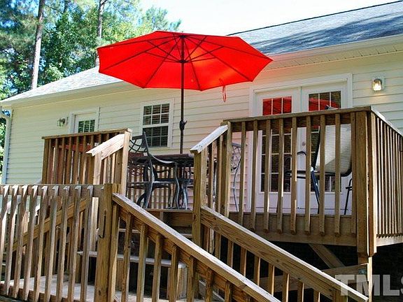 Move-in ready ranch on gorgeous, freshly landscaped .77acre corner lot w/no city taxes & no HOA dues! Easy 30min commute to downtown Raleigh. Hardwood-look laminate, ceramic tile, newer carpet, ceiling fans thru-out, & whole house water filtration! Spacious kitchen w/stainless steel appliances, abundant cabinet/counter space, pantry & Aquasana drinking water faucet. Oversized master suite has walk-in closet & extended dual vanity. Deck overlooks serene backyard w/huge 16x16 wired storage shed/workshop!