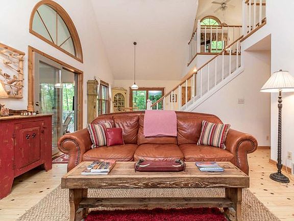 Serenity found on Quiet Bay Trail! Hidden among the billowing pines, oak & maples, tranquil privacy surrounds this exceptional home. Make your way down the gentle slope to find your home perched upon a bank creating a 180 degree panoramic view of crystal clear Roach Lake, 51 acres w/48' depths & 200' sand frontage! As you enter this home you are treated to towering vaulted ceilings & knotty pine flooring. Enjoy a cozy fire in the great room, or Central AC on those warmer days. Windows extend the length of the room & views from the "Leisure Room" & decks are outstanding! The u-shaped main floor plan leads to the spacious kitchen, dining area, master bdrm & full bath. The open loft area provides a quiet area for reading or office activities along w/another bedroom & full bath. The walkout LL offers a spacious family room w/gas stove, 3rd bedroom & full bath. Add'l features include a 2 car garage, pier, covered porch & patio. Come take a look - you will not be disappointed!