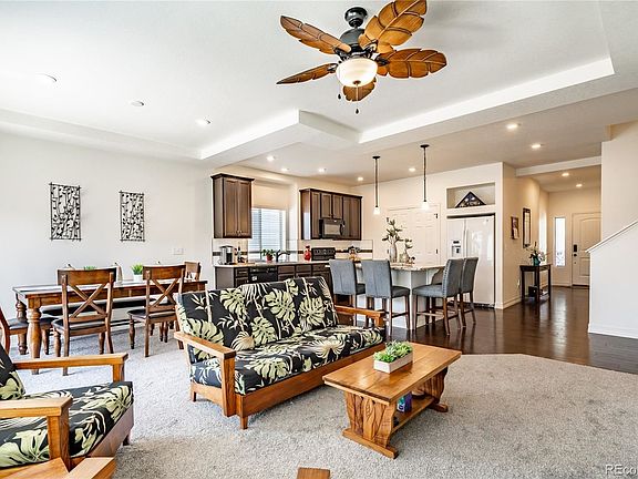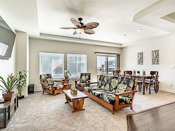 Looking for a newer home Built in 2019 this floor-plan offers something for everyone. Walk through the entrance and you'll pass the guest room with full bathroom at the front of the house with a laundry room off to the side. Continue into the great room with the spacious kitchen offering plenty of cabinet space, a very large kitchen island and a double door pantry - tons of storage! The living and dining area is open to the kitchen which is light and bright with lots of windows. At the back of the home you'll find the owner's suite with a large walk-in shower and walk-in closet. Even though this looks like a ranch-style home, there is actually a 2nd floor with a large loft that would make a great game room and/or a 4th bedroom if needed. Below, you'll find a finished basement with a great theater area. This is also where the 3rd bedroom and full bath is. The walk-in closet for this bedroom is HUGE! There is also additional storage in unfinished portion of the basement. Outside there is an extended concrete patio for dining/entertaining. The two car garage has extra storage as well. This home comes equipped with the following smart technology: sprinklers, thermostat, garage door opener, ring doorbell, and a wireless access point in the pantry. Located in the south part of Reunion - which is great for access to the airport or for people who have varying commutes to the north part of Denver. Seller needs to find a replacement home and would like a 45 day rent back if possible!