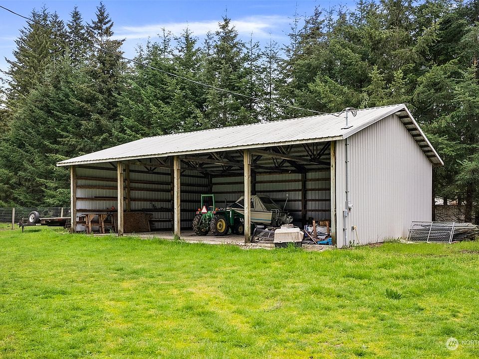 1.3 acres, fenced with a 4 bay machine shed. Concrete floors, electric is in, heavy duty built ready to add doors and finish. Grab this one and use for a tiny home, RV spot or storage.