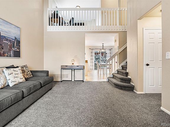 Welcome to this lovely two-story residence featuring 4 bedrooms plus a loft! You’ll be welcomed by the airy front room with its soaring ceilings and new carpeting. Enjoy leisurely moments in the spacious eat-in kitchen, equipped with all the cabinet and counter space you can dream of! Cozy up by the gas fireplace in the expansive family room, offering ample space for relaxation. The main floor bedroom includes a closet and fantastic built-ins, making it a versatile space for an office as well. Upstairs, the primary bedroom boasts dual closets and a luxurious 5-piece bathroom with a jetted tub, shower, and dual sinks. With two additional bedrooms upstairs, along with a loft, this floor plan offers abundant space for everyone. Rest assured, this home features new sod, new exterior paint, new carpeting, a new water heater, new sump pump, new roof, and radon mitigation! With the two-car attached garage and unfinished basement, there’s plenty of storage too! Conveniently located near parks, schools, and all the amenities and restaurants Highlands Ranch has to offer, including membership to the Recreation Centers, this is your ideal home! Check out the virtual tour link with interactive floorplans. Welcome home!