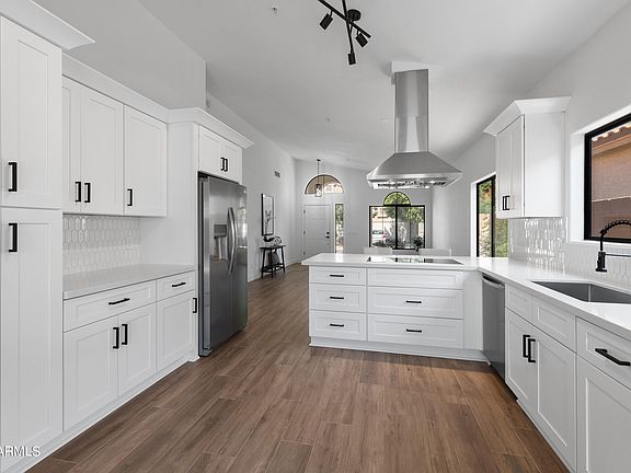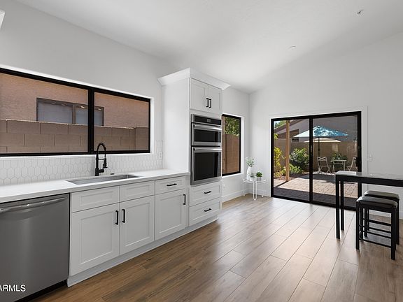 NEW! NEW! NEW! This gorgeous 3 bed/2 bath home has been reimagined and renovated for today's entertaining-open concept lifestyle. Seller has completely replaced all the old polybutylene plumbing, installed new flooring, bathrooms, kitchen cabinetry, countertops and appliances .New exterior and interior paint. New baseboards and casings. Relocated AC and installed pavers and turf so you can enjoy the private backyard with a sneak peek of the McDowell Mtns! Replaced irrigation lines and timer and installed new landscaping front and back. Inside, French doors lead into the Master Bedroom w ensuite bath featuring huge walk-in shower, dual sinks, separate toilet room and nice sized closet. Sliders lead out to the renovated backyard where there's even room for a future hot tub! Bedrooms 2 and 3 are served by the charming full bathroom in the hallway featuring dual sinks and shower/tub combination. You will love the beautiful finishes in the kitchen with honeycomb subway style backsplash, refreshing white cabinetry, crown moldings, soft close doors and drawers, white and gray veined quartz countertops, electric cooktop, professional style hood, stacking oven and microwave, stainless steel refrigerator and room for a coffee bar! Light and bright goes to a new level in this home! Porcelain wood-plank tile flooring through out the kitchen, living and hallway areas with carpet in the bedrooms. More recent roof and AC. Sought after N/S orientation. Steps away from expansive community pool/hot tub w extra parking for family and guests. Lovely community in 85260 with low HOA near all the events and attractions of Scottsdale w easy access to the 101! This one is ready for the SUPER BOWL!