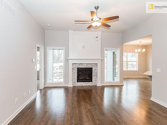 This house is move-in ready. Open plan with great room, wrap around countertop in kitchen with seating and breakfast room that has access to covered patio. 3BR, 2BA with beautiful finishes, high ceilings and tall windows for lots of light. MBath has large walk in closet with jetted tub. Maintenance provided includes Lawn, snow removal, flower beds 1x/yr. HOA=$140/mo. + $390/yr for use of 2 pools, trails, ponds, park. Back patio has a great view of green space and lots of open area for plenty of privacy. Come see.