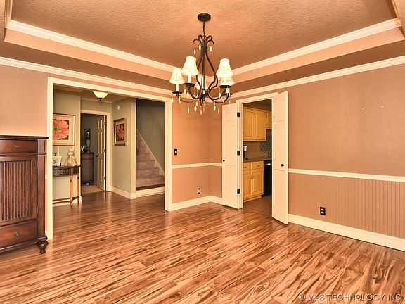 Welcome Home! Now is the perfect time to get settled for the next school year! This fabulous two-story home is located on a corner lot in Jenks School District! This 4 bedroom, 2 ½ bath home has many amenities. The first floor includes an office, formal dining room, beautiful living area (new wood floors in living/dining in 2020) and a large kitchen w spacious eating area. The living area has a vaulted ceiling with an open landing above where you will find 3 of the 4 bedrooms. The primary bedroom is located on the first floor. The fourth bedroom could also be a game or flex room of any type. This bedroom also has a wonderful cedar closet. The house has ample storage space and plenty of built ins with a huge, floored, walk in attic! Enjoy a shady back yard from your covered patio! Yard has a newer privacy fence. Professional landscaping and beautiful yard welcome you home! Don’t miss this one!!