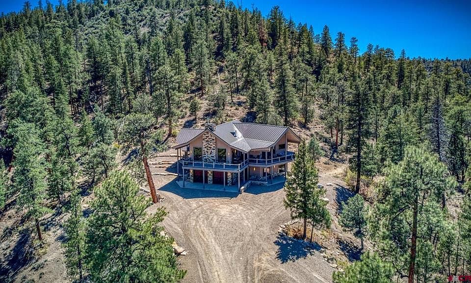 This spectacular estate will sell at Luxury AUCTION WITHOUT RESERVE on Oct 20! List price for REFERENCE ONLY. Offered in co-op. with Platinum Luxury Auctions. Inquire for details. Secluded estate on 35 acres with incredible Chimney Rock Views and bordering over 200,000 acres of San Juan National Forest! A wild life and recreational paradise, yet only 20 minutes to all the amenities in Pagosa Springs. This owner has done what many dream about doing: Transforming a blank canvas into the ultimate way of living above beautiful Cabazon Canyon. Rooted in the historic Ancestral Puebloans who inhabited the National Monument "Chimney Rock" the beauty of Southwest Colorado touches your soul here. The property has 3 houses and a 50'x38'x18' shop for your cars, boats and toys + office, fitness room, infrared sauna, and a pool table. MAIN HOUSE 2019: 3629 SF. 3 bdrm 2.5 ba built by Tim Horning. Modern and luxurious mountain home with tall ceilings & doors, AC, wood grain tile flooring, wall mounted water fall and in-your-face VIEWS OF CHIMNEY ROCK FROM EVERY ROOM! Open kitchen with granite counter tops and top of the line Wolf range oven and Sub Zero refrigerator. Island with barstools + dining table. Powder room and stairs up to the living room with a fireplace as the center piece. Relax with a cocktail from the built in bar and take in the views from the huge, covered Trex deck with a jacuzzi. The master bedroom has a fire place and access to a home office with floor-to-ceiling book shelves. The master bathroom has spa ambience with raw travertine tile, jetted tub, shower, walk-in closet and a closed in toilet/bidet. Downstairs 2 bedrooms, bathroom, laundry room and access to the 2 car, heated garage with epoxy coated floor. MANUFACTURED HOME 1998: 1784 SF. 3 bdrm 2 ba, purged. Completely remodeled with updated windows, bathrooms and kitchen/appliances. This looks and feels like a modern, stick built home. Incredible views from the open kitchen/living room and dining area. CABIN 1971: 707 SF. 1 bdrm 1 ba. Remodeled with newer windows, bathroom, wood fireplace, loft bedroom and washer/dryer. It has a small studio kitchen. The manufactured home and cabin have matching wood exterior and share a spacious Trex deck with MASSIVE VIEWS OF CHIMNEY ROCK! NO HOA and 3 living areas, the possibilities are endless! Multi family, short term, long term, retreat property, wedding venue - or enjoy it all to yourself with lots of space for visiting friends & family. A quick 45 min drive to Durango and the La Plata County regional airport providing nonstop services to Dallas-Fort Worth, Denver and Phoenix. Pagosa is known for the deepest hot springs in the world, the most snow in Colorado at Wolf Creek Ski Resort and as an absolute outdoors paradise! There is something special here. As you gaze out upon Chimney Rock Monument, and the rock walls across the canyon, you feel as though you can hear the drums of the Ancestral Puebloans, who once walked this land. As you hear the wind through the trees, you can sense the history that fills this land. Come see and feel this property and be welcomed home.