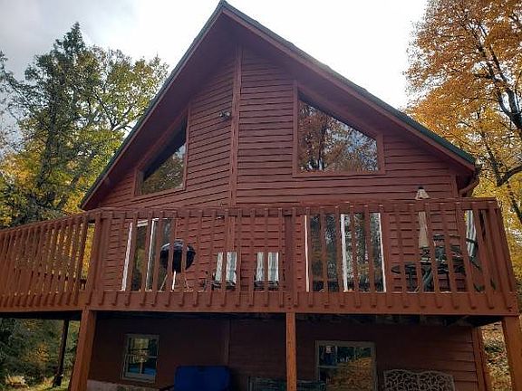 Fresh, Renovated Home on Fisher Lake! Check out this 3 bedroom, 2 bath, year-round home with 134 feet of sand frontage and 1.96 acres of rolling, wooded land. Amazing lake views of pure Wilderness with very few piers in sight! Main level has 2 bedrooms, full bath, kitchen with dining area and the living room. The kitchen has an open concept to the living room with patio doors that lead to the wrapped around deck to the lakeside. The living room has cathedral pine ceiling & walls, new lakeside patio doors with trapezoid windows at the top. This area is accented with a free-standing wood stove on a raised hearth with fieldstone. A log staircase leads to the upper level which includes a private master bedroom suite. There is a large walk-in closet and a nice bathroom with separate potty room and ceramic tile floors. The home interior is mostly beautiful T&G pine wood, drywall, wainscot in the hallway and the 2 bedrooms with carpet and ceramic tile floors. The lower level is unfinished, poured concrete walls with nice-sized windows. Also plumbed for a 3rd bathroom and laundry room area. It would make a great Rec. room & an additional area for storage or a hobby area. The freshly painted cedar siding and deck with a new metal roof! Perfect time to add your own touch of color and make it your own "dream home in the Northwoods" on this desirable 3-lake chain of lakes. Aluminum Pier & 14 ft. boat included with some brand new Northwoods furnishings. Direct access to the recreational trails!