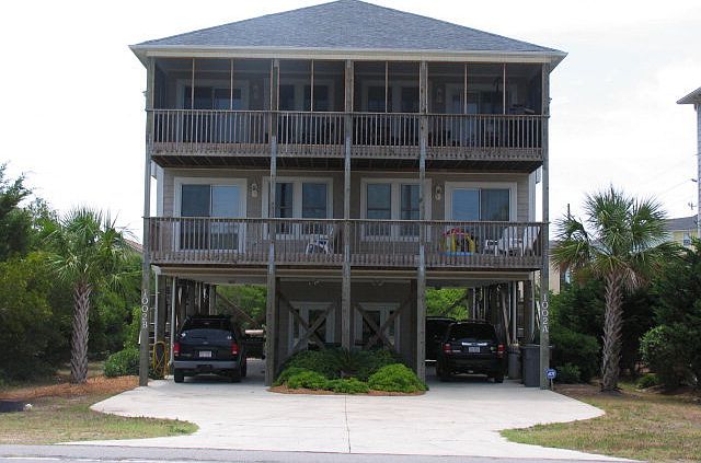 This pristine clean,well built,low upkeep,north side duplex is located in the center of the island. This three bedroom,three bath property has a beautifully landscaped view and view of the sound beyond. The two front porches offer great opportunities to capture the setting sun,or enjoy the island breezes.The porch off the greatroom is fully screened.The screened porch makes a perfect spot for outdoor dining.There's a fireplace for chilly nights,lots of storage including a large ground floor room to handle beach and watertoys,bikes,and other things as well.The outdoor shower has hot and cold water.All bedrooms are nice size,and each has it's own full bath.The master bedroom has dual large closets.There's plenty of parking.Truly a great place!