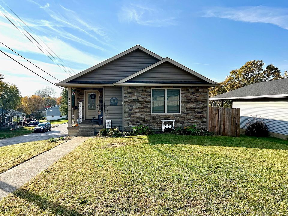 Built in 2016, this 3 bed, 2 bath home boasts approximately 1805 square feet and is convenient to downtown shopping and amenities. Spacious eat in kitchen with solid surface counters is open to the living area. Split floor plan with spacious primary suite and bath. Full basement with poured concrete walls, partially finished, with large laundry room, plumbed for possible 3rd bath. Oversized two car basement load garage. Newly fenced in yard with wooden six foot privacy fence, convenient for pets and entertaining.