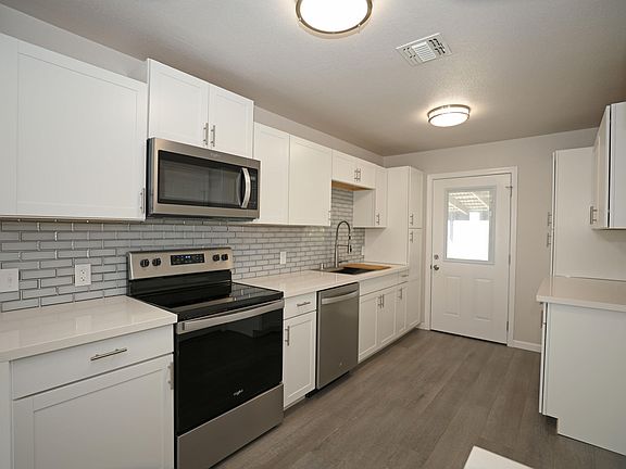 Beautiful home in a convenient central location! New interior and exterior paint with a modern feel. New kitchen cabinets, quartz counter tops, and stainless steel kitchen appliances. New LVP flooring and new carpet. New bathroom vanity, tub and tile shower surround. Upgraded fixtures. Functional floorplan. One car garage. Large backyard with storage shed. Great curb appeal!! Turn key! Must see!!