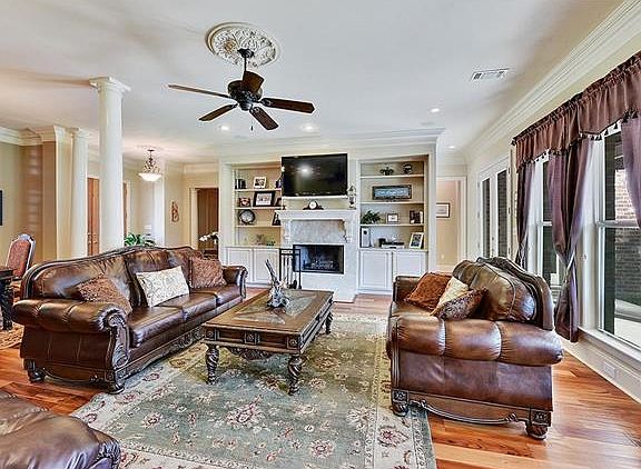 Custom beautifully landscaped home on 1.6 acres boasting 3 fireplaces, hand scraped tiger wood, separate living and keeping room off kitchen, large gameroom with private guest suite, triple crown molding, central vac, sprinkler system, private well. Chef's spacious kitchen with all SS appliances, 2 convection ovens, gas 5 burner range, warming drawer, ice maker. Plenty of storage space and walk in attics. Fenced in pool ready backyard with outdoor kitchen and patio. Bonus room above the garage.