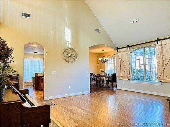 Upon entering, you'll be captivated by the grandeur of the living room, featuring vaulted ceilings that create a sense of spaciousness and sophistication. The gas fireplace serves as the focal point, providing a cozy ambiance. The living room seamlessly flows into the kitchen, which is a chef's dream come true. It showcases exquisite granite countertops, offering both elegance and functionality. The abundant cabinetry provides ample storage space for all your culinary needs. The master suite is a true retreat, featuring a spacious layout, a walk-in closet, and an en-suite bathroom with a double vanity, shower and soaking tub. Step outside to the expansive backyard, where you'll find a covered porch, perfect for outdoor entertaining and enjoyment. Whether you're hosting a barbecue, sipping your morning coffee or watching your favorite sports team, this outdoor space offers endless possibilities. The professionally landscaped yard is a testament to both beauty and convenience, featuring a sprinkler system that effortlessly maintains the vibrant and healthy lawn year-round. Located in a sought-after neighborhood, this home offers easy access to schools, hospitals, dining and shopping. Don't miss the chance to make this remarkable residence your own!