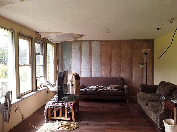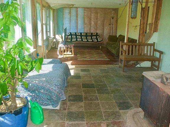 Ranch style home in need of renovations. Detached 3 car two story barn with electric. Large green house. Land borders state land at back and also across the road to state land.House needs a roof and new kitchen, slab foundation seems sound.