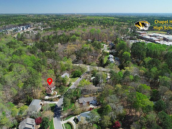 It's love at first sight when you walk in the front door and your gaze is drawn to the beautiful wooded and private backyard. Tons of space for everyone with 5 bedrooms plus several flex areas to fit just about any possible need. Family room with vaulted ceilings opens to the spacious kitchen/breakfast room and sitting area creating a wonderful space for entertaining. The two section screen porch is accessible from the family room (use this part for dining al fresco?) and the main level primary suite (ideal for morning coffee, work from home or evening cocktails!). Fresh paint upstairs + in the basement and new carpet upstairs + in the primary suite. Welcoming rocking chair front porch and cozy fire pit in the back. Large unfinished storage areas, finished basement and side entry garage. This home is in a smaller neighborhood with nice spacing between homes and is a stone's throw from the newly rebuilt Chapel Hill High School. Homes in desirable Camden Place don't come on the market too often- HURRY!