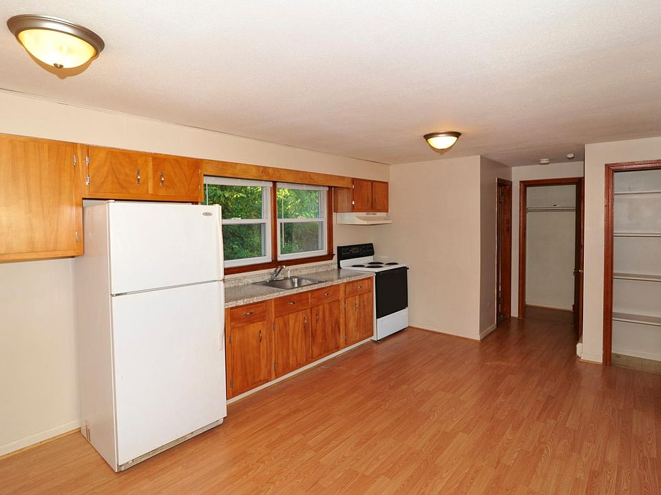 This one bedroom flat is perfect space for single occupancy or double occupancy! This charming apartment is nestled in a unique brick building! Featuring renovated hardwood floors, refrigerator, stove, extra shelving areas, 1 full bath, larger living room, off street parking! Please send an email to schedule a viewing! -No Pets -No Smokers -Credit score of 620+ -Prospective tenant will pay $40 for credit/background check -Prospective tenant can provide previous landlord references -tenants pays for all utilities