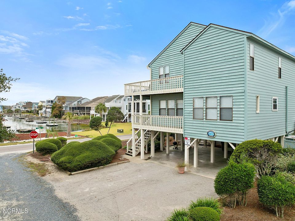 UNOBSTRUCTED CANAL VIEWS available at this 3rd Row Island Beach House that's a short walk to the Ocean! Located on a corner lot at 10th St & Canal Drive, this well-loved Island home uniquely has a direct tremendous view straight down the canal. From any of the multiple entrances you'll find a sunny & happy interior with a vaulted ceiling, spacious living room with two seating areas, generous Kitchen and Dining space set apart with large windows providing abundant island sunlight. There are 3 generous bedrooms, 2 full baths, upper-level loft, main-level laundry, and multiple outdoor porches to enjoy salt-air breezes and watch the tide rise & fall. There's even clear Ocean Views from the upper-level windows! Put your touches on this home to make it the perfect beach retreat for extended getaways with friends or family or it could be an ideal primary residence. Simply bring your cooler and beach gear home from the pristine Sunset Beach shoreline down the nearby beach access, wash your sandy toes off in the outdoor shower and enjoy calling this your Sunset Beach Island Home.