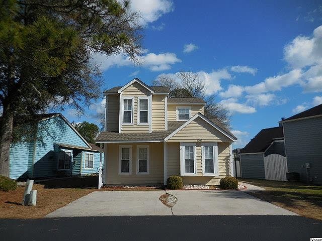 Charming home within golf cart ride to the beach. Two-story with large master suite downstairs, two bedrooms upstairs with full bath, living room with vaulted ceiling, fireplace and lots of windows. New laminate flooring just installed in the living areas and new kitchen counter tops. Sun room can be used for extra dining, office space or cozy reading corner. Relax on the nice patio overlooking the community lake. Another nice feature is the large laundry room which can also be used for storage. The low monthly HOA fee includes lawn maintenance so you will have more time to enjoy the beach! The Lake Homes community has a clubhouse and swimming pool. This lovely home is located close to the Aquatic Fitness Center, post office, area churches, great restaurants, shopping, and entertainment. Square footage is approximate and is not guaranteed. Buyer is responsible for verification.