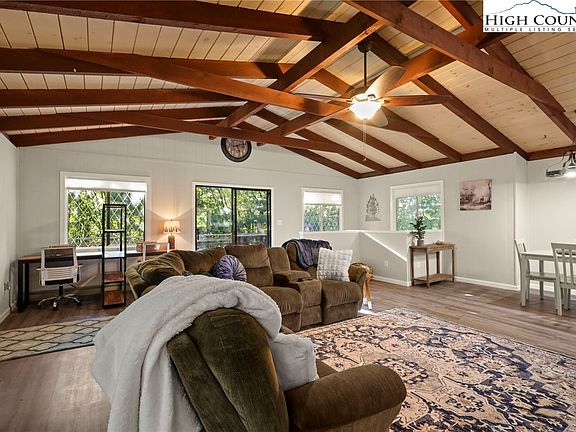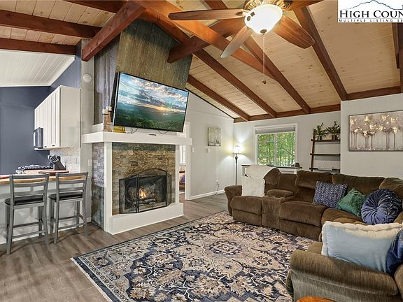 HUGE price IMPROVEMENT~ "BEARADISE CHALET" is our newest listing offering the best COMFORT and STYLE of any home on the market! The owners did an amazing job keeping with the original CHALET style of this home as well as introducing the cabin/farmhouse feel. Featuring 3 BEDROOMS & 3 FULL BATHS this home has been extensively RENOVATED & tastefully UPDATED! Bring your suitcase & toothbrush only as this chalet is MOVE - IN ready, being sold TURN KEY and ready to start enjoying the crisp fall weather and SKI SEASON. "Bearadise Chalet" is perfectly nestled on a LEVEL .54 of an acre lot ideal for your fur babies and children. The open floor plan offers spacious living areas all flowing together allowing for excellent entertainment and family gatherings. There are wood ceilings & beams enhancing the rustic ambiance and the large windows allow for tons of natural sunlight. The cozy family room is furnished w/ a large sofa sectional & has a gas log fireplace. The kitchen is STUNNING with butcher block counters, new cabinetry, pantry, recessed lighting, stainless appliances, GAS range and a farmhouse sink. There is a bedroom suite on the main level as well. The staircase leading downstairs has motion sensor recessed stair lighting. The lower level has the primary bedroom suite and the SPA LIKE bathroom has double vanities, a tiled walk in shower and JETTED SPA TUB! There is also a guest bedroom, full bath and laundry area. You can enter from the lower level which has a mudd foyer and recreational area which could be furnished w/ a sofa sleeper and tv. The exterior has been freshly painted, has new side decks & exterior lighting. Being sold FULLY furnished and is Beech Mountain Club Eligible. Home has never been rented.