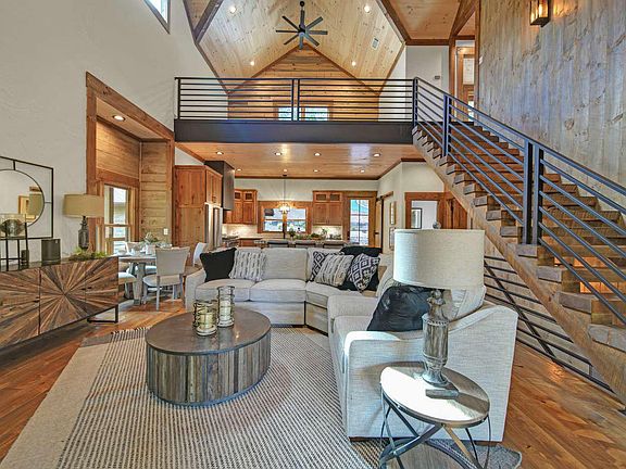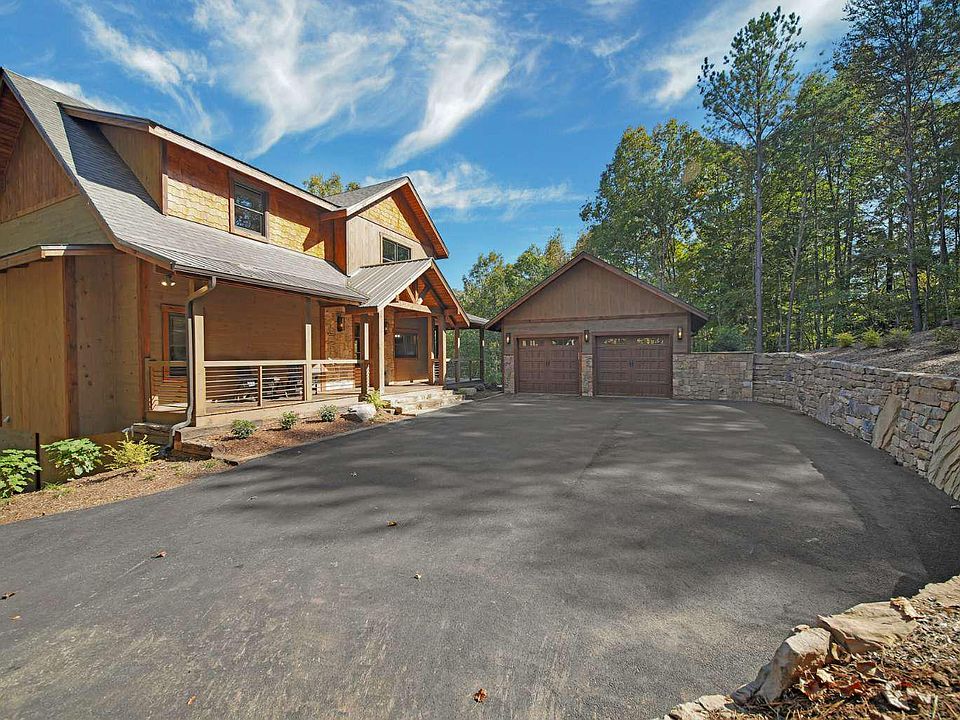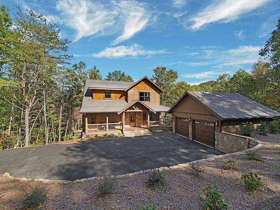 Lomonaco Log Homes make Mountain Living nothing short of Luxury Living. This brand new modern rustic cabin is the perfect blend of warm finishes w/accents of textures throughout - all situated on 3.08 acres with a creekside, picturesque setting. This gorgeous property features a paved driveway flaunting a large stone rock wall, oversized two car garage w a professional landscaping package. The grande entry brings you into the breathtaking kitchen thats perfect for entertaining, complete w custom cabinets, island, and Viking appliances. There were no details overlooked with the interior choices of hardwood flooring, granite countertops, black seemless modern lighting, wood beam accents that embelish the cathedral ceilings, 3 ensuite bedrooms with an additional sleeping loft or office, 2 half baths, walk-in tile showers and floors, laundry room, breathtaking rock fireplaces w/black steel detailing, large sliding glass doors leading to the exterior deck space on all 3 levels, overlooking a beautiful backyard. The terrace level is complete with large gaming space, wet bar, impressive glass enclosed wine cellar, & stained concrete flooring. Conveniently located to Downtown Ellijay, local boutiques, restaurants & wineries. Don't miss this opportunity to own your own piece of the mountains!