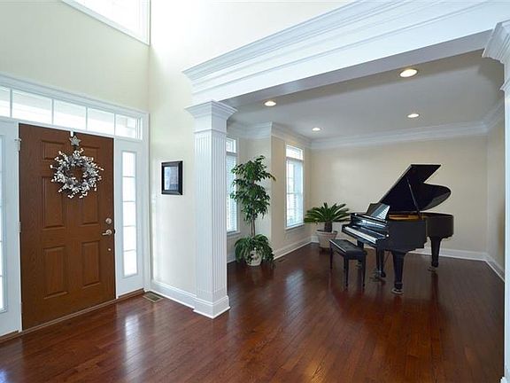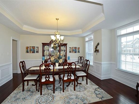 Amazing home with a special floor plan. Two story entry, living room with signature moldings, entertainment sized dining room with a tray ceiling and wainscoting. Hardwood flooring flows throughout the main floor. The great room is magnificent with a soaring ceiling, two stories of windows flanking the fireplace. The ceiling is a boxed beam ceiling too. The kitchen is a delight with ebony cabinetry, granite counters, a back splash, stainless appliances, and a designer hood over the cook top. The huge master is on the main floor with two walk-in closets, & awesome bath w/ double vanities, separate ceramic tile shower & tub. The second floor has hardwood flooring in the hallway & three big bedrooms & two full baths. The lower walk out level has an enormous game room w/ a stacked stone fireplace. Two large storage areas 33x18 & 20x15. The deck is two tiered with access to the lower yard and another deck & patio overlooking open space. 3 car attached garage. Brick & hardie board