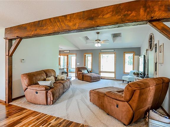 Wow! You don't want to miss this one. Completely remodeled 3 bedrooms and 2 bathroom home situated on 13 acres. 3 car, attached, drive-through garage with epoxy flooring. Updated kitchen and bathrooms and large family room added on. All new Pella windows, roof, and siding. 44x108 Morton Building with 3 overhead doors on openers, fully insulated, 3/4 bathroom, professional paint booth, furnace, water heater, and wood-burning stove with blower. Huge pond with 105' dock and 75' bridge as well as 2 additional ponds and 2 goat houses. 8 person hot tub stays with home. Brand new circle drive. Property backs up to Corp ground, located next to Timberlake Gold course, and minutes away from camping. Call today for a showing.