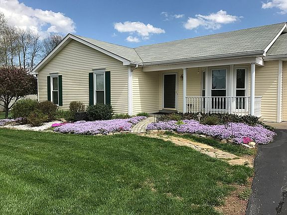 Ranch style home with cream/yellow vinyl siding with Hunter Green Shudders. Additionally we built a 36x28 additional unattached garage which is currently used for my husbands work shop and also has a storm shelter built into the ground which can easily accommodate 3 grown adults.