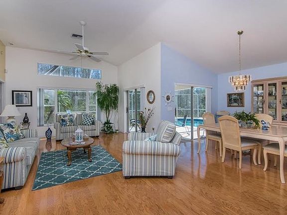 PARADISE FOUND...in this 3 bedroom, 2 bath, 2 car garage GORGEOUS POOL HOME LOCATED in a BEAUTIFUL SETTING WOODS ALL ROUND on the CUL DE SAC... This home has been meticulously maintained...wood and ceramic tile flooring throughout...inside laundry room....diamond bright finish in the L SHAPED POOL...LARGE LANAI FOR OUTSIDE ENTERTAINMENT...nook in the kitchen...foyer entry....iniside laundry...and more a must to see.