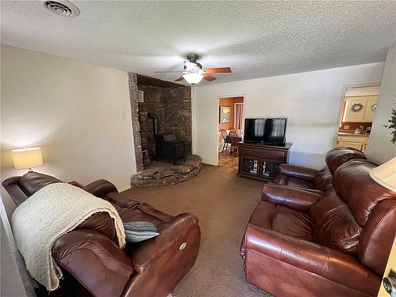 - Ceiling Fan(s), Wood Burning Stove, Window Treatments