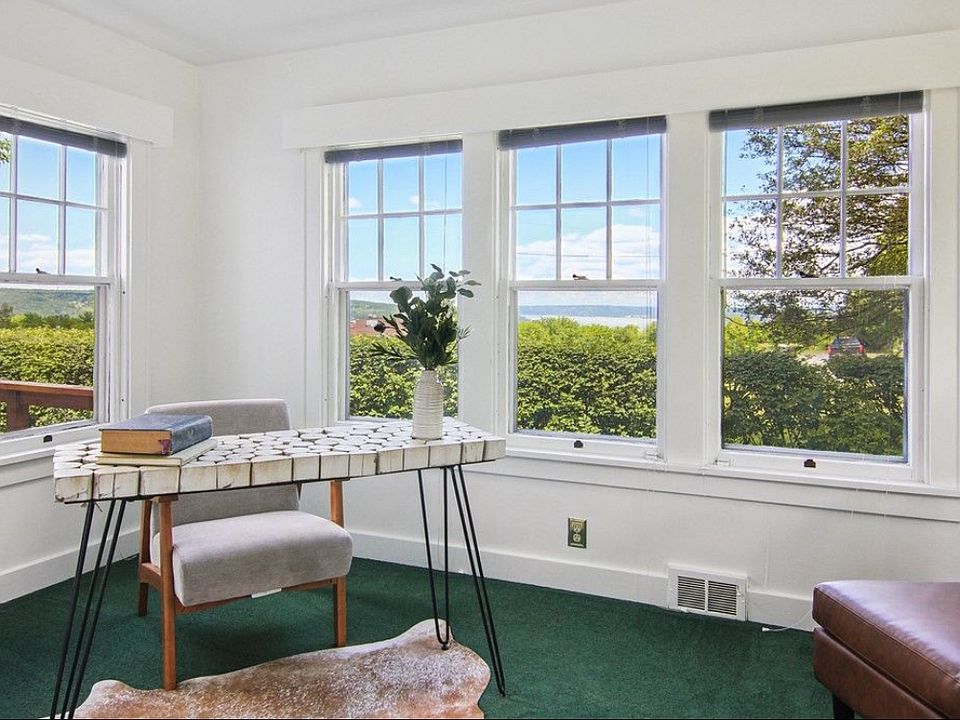 Enjoy breathtaking lake and city skyline views of Cayuga Lake and Ithaca the wrap-around deck and large windows make this feel like a retreat.