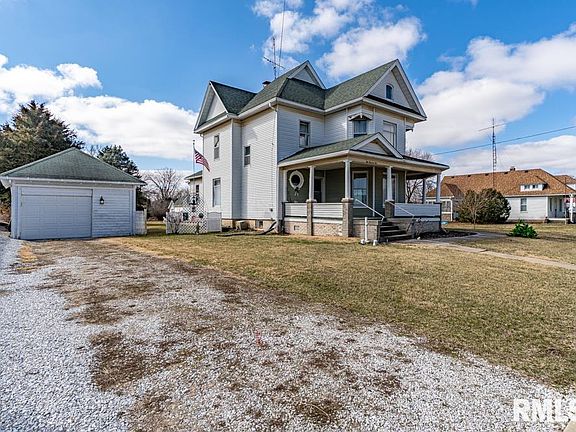 Welcome to 1002 Broadway St., Astoria, IL! This amazing historic 2 story home features original wood work throughout, wrap around porches and amazing light fixtures. Inside the home you will find a grand foyer with a beautiful wood staircase, a front living room with a big bay window, an amazing formal dining room with a gorgeous ornate fireplace, an eat-in kitchen with lots of cabinets and a pantry, and a main floor master suite. Upstairs are 3 additional large bedrooms, with a half bath attached to one of them. The home sits on a full basement with the laundry room and an additional shower. Outside the home is nestled on a .61 of an acre, with beautiful covered decks, a 2 stall carriage style garage with attic storage and a separate 1 stall garage. Don't miss out on this impeccably maintained gem of a home!