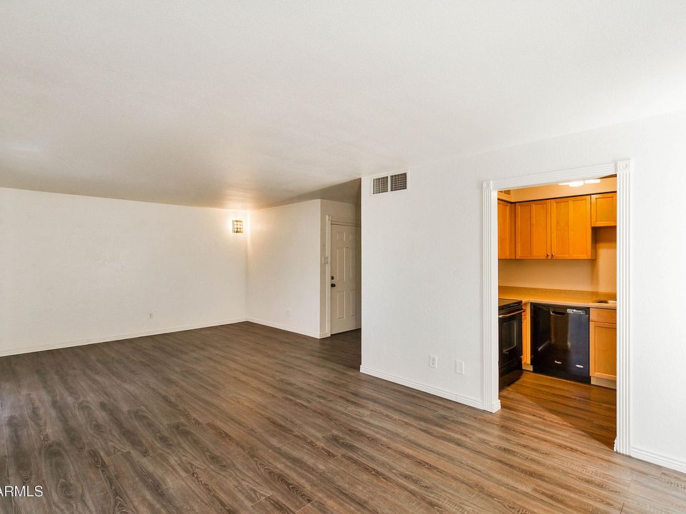It's all about location! This urban, gated, central Phoenix condo enjoys easy access to I-10 and SR-51. Nestled directly across from the beautiful greens of the Phoenix Country Club, this tastefully updated home has a private, corner location, with only one neighbor below and one beside. This one bed/one bath home features hard wood-finish flooring, and updated kitchen and cabinetry. Large bedroom, with a giant walk in closet, featuring custom cabinetry for storage. The home includes one covered parking space, as well as private storage. MAJOR UTILITIES INCLUDING ELECTRICITY ARE INCLUDED in the HOA dues for easy budgeting. This one won't last long, schedule your viewing today!