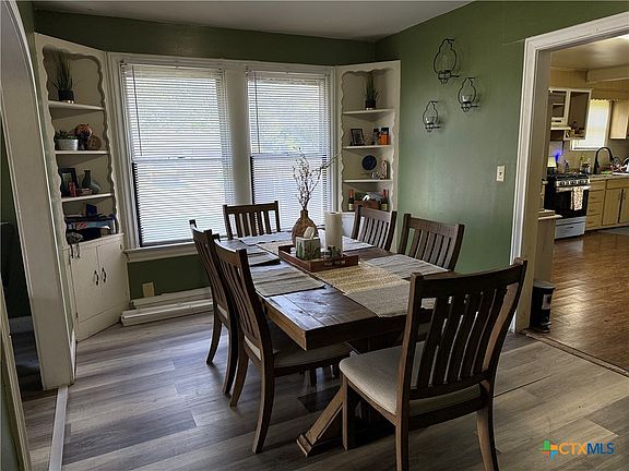 This charming 1950s home is situated in the heart of Victoria, perfectly blending timeless character with modern comfort. Nestled on a 0.206-acre corner lot, it features arched entryways and built-in shelving that enhance its unique charm. The spacious living room and generous eat-in kitchen create an inviting atmosphere for gatherings. Additionally, the property includes a 2-car detached garage with a private 1-bedroom, 1-bath apartment, which is ideal for a guest suite, rental income, or a home office. The home is equipped with central heating and air conditioning, city utilities, and access to natural gas. Located within the Victoria Independent School District (ISD), this residence beautifully combines classic style with everyday convenience.