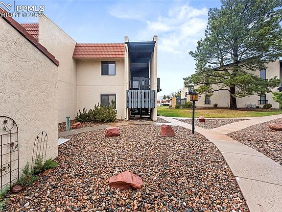Welcome to Villa Sierra, a 55+ community where everyone has a view! This light and bright upper end-unit condo has spacious rooms, 2 bathrooms, a mountain facing deck, and views for days! Great Pikes Peak view from the kitchen window. Enjoy the pool, pickle ball, tennis courts, and manicured property. You have your own covered parking with a storage unit attached. Close to the guard house for an added feeling of security. New carpet in the 2 bedrooms. Lots of interior storage. Easy access to shopping and I25.